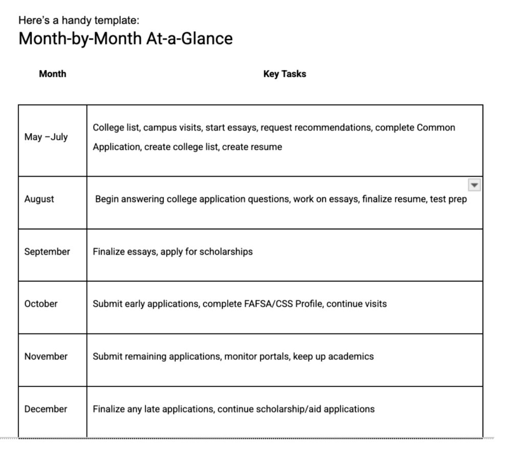 I can hear you all saying, “I’m so tired, I just finished a brutal junior year!” I get it! And this is why I’m writing this blog – to help you break down the process into manageable bits. Like I always tell my students, you can only eat an elephant one bite at a time. So let’s do this!